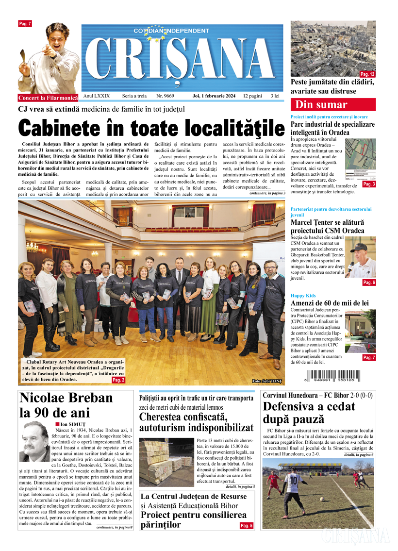Fondat la Oradea, în anul 1945, cotidianul Crişana este una dintre cele mai longevive publicaţii locale, cu o apariţie neîntreruptă de 80 de ani.