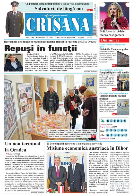 Fondat la Oradea, în anul 1945, cotidianul Crişana este una dintre cele mai longevive publicaţii locale, cu o apariţie neîntreruptă de 81 de ani.
