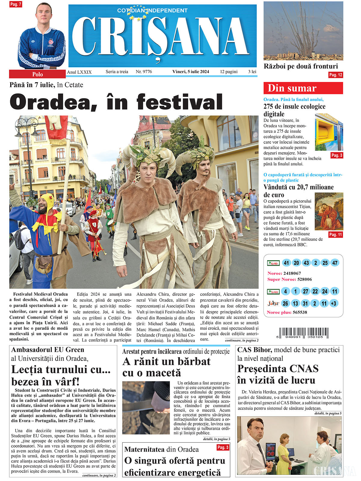 Crişul Sântandrei a revenit din vacanţă - Reunire cu gândul la play-off Opera eminesciană, mai aproape de public - Caravana „Luceafărul” Eveniment expozițional inedit - „Bucurie magică” Adolescent operat pentru o fractură severă de os scafoid, cu deficit de consolidare - Caz medical rar în ortopedia pediatrică În memoriam Czárán Gyula - 120 de ani de la moartea „apostolului munţilor din Bihor” A fost lansat Festivalul Internațional de Artă Fotografică  - Ziua Artei Fotografice în România
