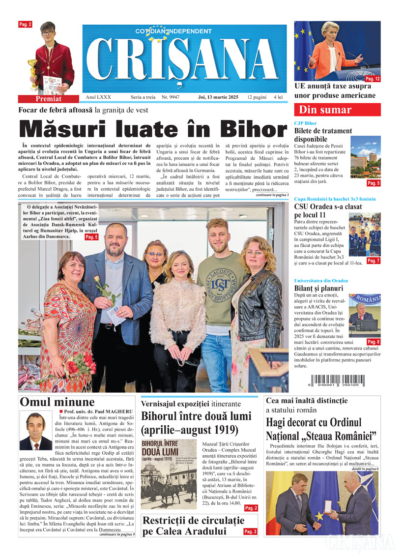 Fondat la Oradea, în anul 1945, cotidianul Crişana este una dintre cele mai longevive publicaţii locale, cu o apariţie neîntreruptă de 81 de ani.