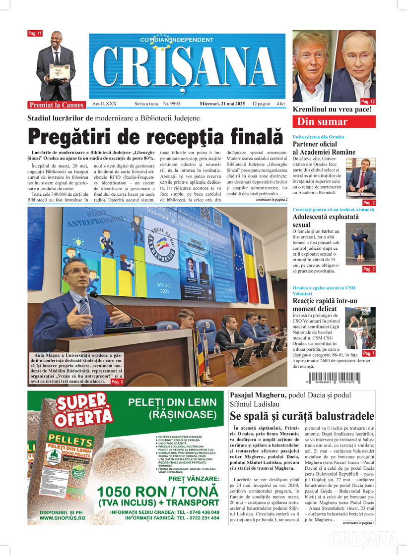 Fondat la Oradea, în anul 1945, cotidianul Crişana este una dintre cele mai longevive publicaţii locale, cu o apariţie neîntreruptă de 81 de ani.