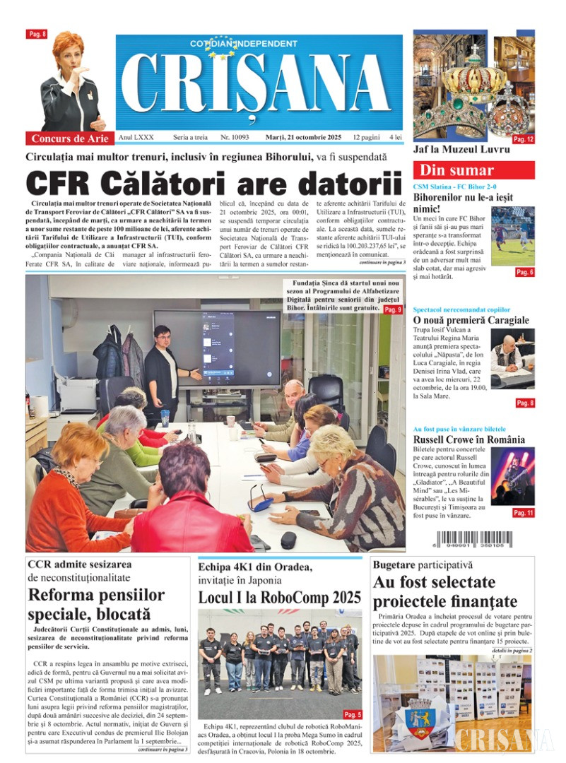 Fondat la Oradea, în anul 1945, cotidianul Crişana este una dintre cele mai longevive publicaţii locale, cu o apariţie neîntreruptă de 81 de ani.