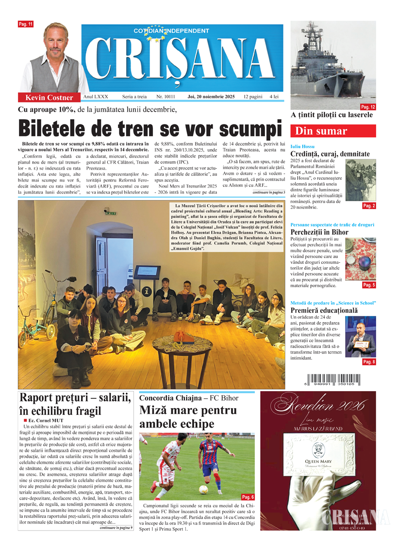 Fondat la Oradea, în anul 1945, cotidianul Crişana este una dintre cele mai longevive publicaţii locale, cu o apariţie neîntreruptă de 81 de ani.