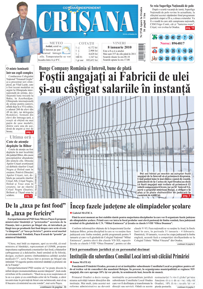 Fondat la Oradea, în anul 1945, cotidianul Crişana este una dintre cele mai longevive publicaţii locale, cu o apariţie neîntreruptă de 81 de ani.