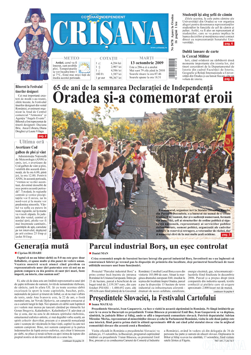 Fondat la Oradea, în anul 1945, cotidianul Crişana este una dintre cele mai longevive publicaţii locale, cu o apariţie neîntreruptă de 80 de ani.