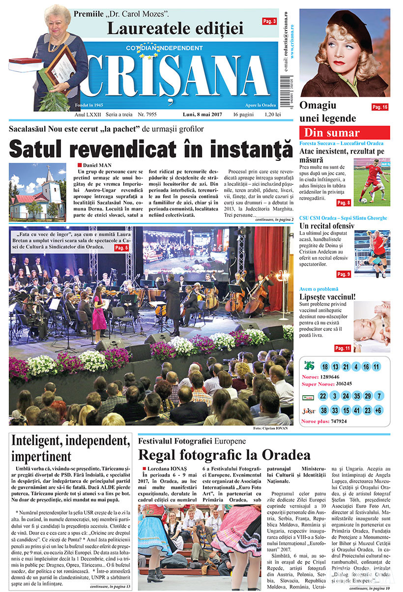 Fondat la Oradea, în anul 1945, cotidianul Crişana este una dintre cele mai longevive publicaţii locale, cu o apariţie neîntreruptă de 81 de ani.