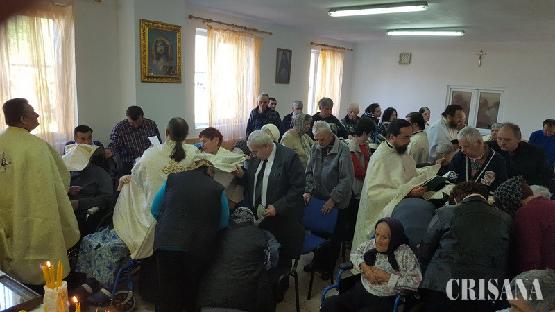 Cu acest prilej, preacuvioșii părinți, dimpreună cu Părintele paroh Nicolae Bura, directorul acestui aşezământ social-filantropic, au săvârșit Taina Sfântului Maslu, pentru contenirea bolilor, ușurarea suferințelor și a tuturor neputințelor sufletești și trupești ale celor 40 de persoane vârstnice internate aici. Părinții de la mănăstire au adus cu ei racla cu sfinte moaște de la mai mulți sfinți, dar și icoana cu un fragment din Cinstitul Lemn al Sfintei și de Viață făcătoarei Cruci pe care a fost răstignit Mântuitorul Iisus Hristos, spre bucuria duhovnicească a bătrânilor și a celor care îi îngrijesc. La final, Părintele stareț Mihail Tărău a rostit un cuvânt de învățătură, aducând balsam de mângâiere și alinare în sufletele suferinzilor, iar părintele Nicolae Bura a adus mulţumiri părintelui stareț și călugărilor pentru prezență și împreună-rugăciune atât de folositoare în aceste zile ale Postului Mare.