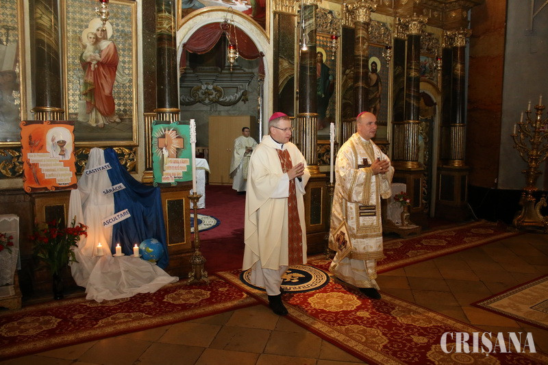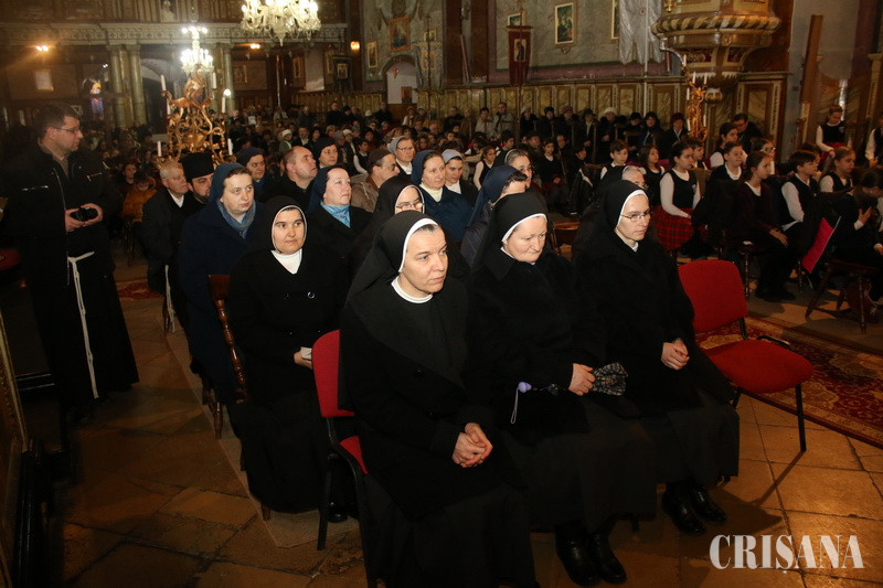 Ieri, de Sărbătoarea Întâmpinării Domnului, la Catedrala Greco-Catolică „Sfântul Nicolae”, a avut loc Sfânta Liturghie, săvârşită de Preasfinţia Sa Virgil Bercea, episcopul greco-catolic de Oradea, şi de Excelenţa Sa Lászlo Böcskei, episcopul romano-catolic de Oradea, alături de un sobor de preoţi. La liturghie, au participat călugării și călugărițele care trăiesc pe teritoriul celor două Episcopii, precum și credincioși de diferite vârste. Cuvântul de învăţătură a fost transmis de Preasfinţia Sa Virgil Bercea, care a subliniat misiunea persoanelor consacrate: „Cât de mult dăruiesc persoanele consacrate tuturor – ei oferă lumină, fiind o binecuvântare pentru noi, disponibili să ofere oricând, orice”. În cadrul Sfintei Liturghii, a avut loc şi reînnoirea voturilor persoanelor consacrate. Liturghia a fost animată de către elevii claselor „Steb by Step” de la Liceul Greco-Catolic „Iuliu Maniu”.