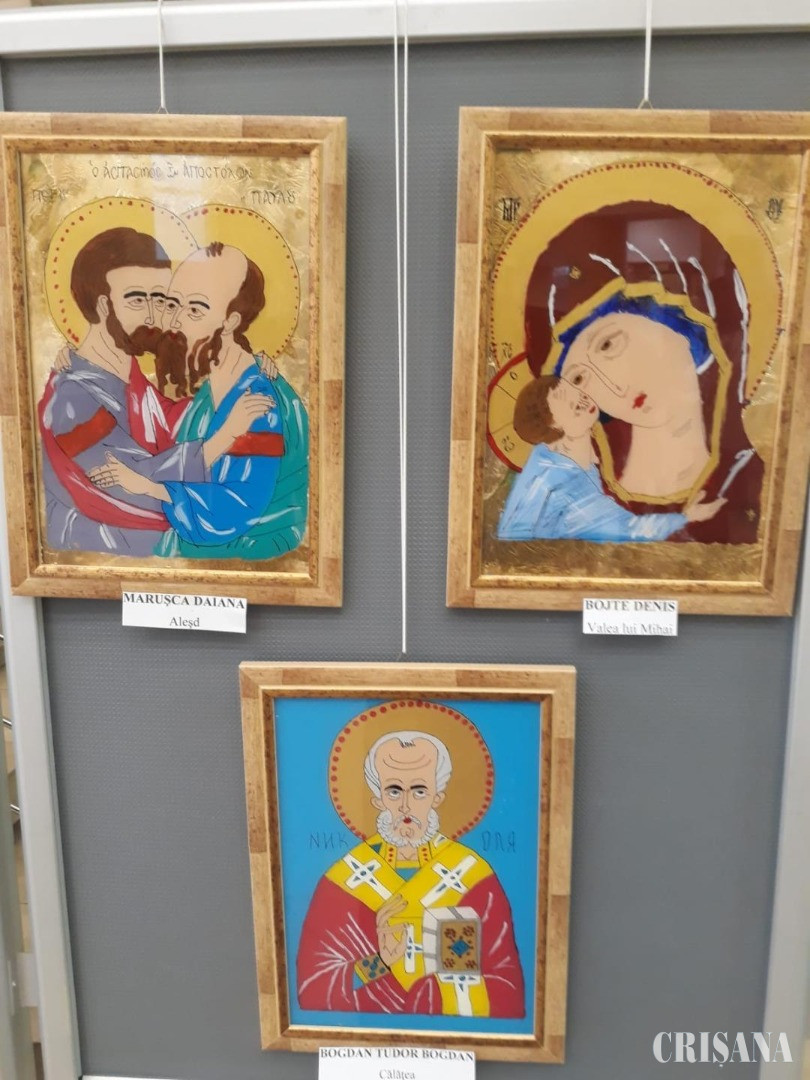 Expoziţia, care cuprinde aproximativ 30 de icoane pe sticlă pictate în stil bizantin de elevi din satele judeţului Bihor, este organizată de Asociaţia Femeilor Ortodoxe Române din Episcopia Oradiei (AFOREO), în parteneriat cu Parohia Jaca din Ungaria.