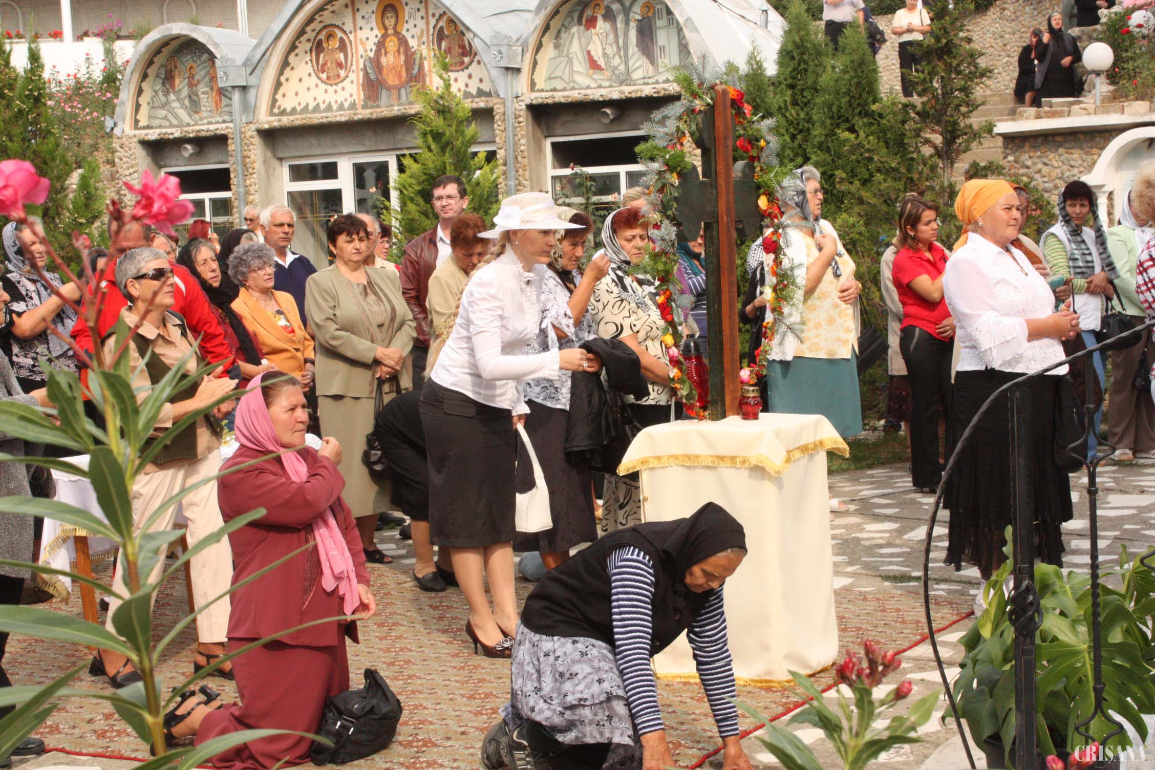 Sute de enoriaşi s-au adunat în curtea mănăstirii încă de la primele ore ale dimineţii, pentru a fi alături de măicuţele mănăstirii şi părintele Atanasie Paleu, cel care a oficiat sfânta liturghie. "Înălţarea Sfintei Cruci", una dintre cele mai vechi şi mai importante dintre sărbătorile creştine, este