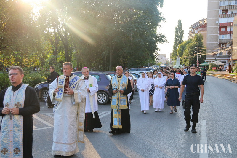 În ajunul uneia dintre cele mai mari sărbători ale creştinătăţii, Adormirea Maicii Domnului, credincioșii greco şi romano-catolici din Oradea au participat, luni seară, în număr impresionant la o amplă procesiune cu statuia Fecioarei Maria de la Fatima, împreună cu Preasfinţiţii episcopi Virgil Bercea şi Bocskei Laszlo, intonând cântece şi imnuri mariane, pe străzile orașului.