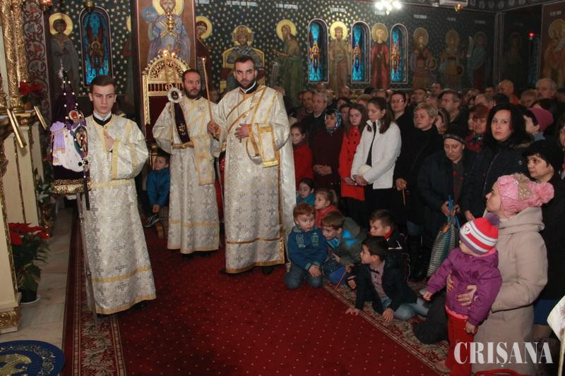 Prăznuirea Sfântului Nicolae, patronul Catedralei Greco-Catolice din Oradea, a fost prilej de mare sărbătoare în întreaga eparhie. Ca în fiecare an, programul de rugăciune organizat cu această ocazie a fost animat de corul Seminarului Teologic din Oradea. Slujbele în Catedrala Greco-Catolică au început de sâmbătă seara când s-au celebrat Vecernia Mare cu Litie şi procesiunea cu sfintele moaştele, urmată de Acatistul Sfântului Ierarh Nicolae. Duminică dimineaţa de la ora 8.00, s-a oficiat Sfânta şi Dumnezeiasca Liturghie Arhierească, în cadrul căreia s-a acordat epigonatul celor doi vicari ai Eparhiei noastre, părintele Olimpiu Todoran, vicar general şi părintele Antoniu Chifor, vicar episcopal cu preoţii, dar şi crucea pectorală părintelui Anton Cioba, rectorul Seminarului Sfinţii Trei Ierarhi, Vasile, Grigore şi Ioan din Oradea. Pentru comunitatea Seminarului, această celebrare a avut un motiv în plus de bucurie, şi anume primirea treptelor lectoratului şi ipodiaconatului. Astfel, PS Virgil a hirotesit lectori pe seminariştii anului III, Lucian Alexe, Fabian Florian, Giusepe Ghiurcă, Cristian Matus, Valentin Pop şi pe absolventul Arpad Iulian Barabaş şi ipodiaconi pe seminariştii anului IV, Gabriel Beita, Bogdan Miheş şi Antoniu Suciu. Sărbătoarea hramului a început de sâmbătă şi la Biserica Albastră, parohie a părintelui Gheorghe Nemeş, când preoții slujitori au adus spre închinare racla cu Sfântul Mir de la moaștele Sf. Ierarh Nicolae din localitatea Bari, Italia. A urmat otpustul serviciilor religioase, când copiii din parohie au îmbrăcat pomul de Crăciun în glas de frumoase și tradiționale colinde românești. Duminică, în ziua praznicului Sf. Ierarh Nicolae, la ora 9.00, s-a oficiat slujba Utreniei și a fost întâmpinat PS Sofronie. Episcopul Oradiei a oficiat Sfânta Liturghie alături de un sobor de 12 preoţi, iar răspunsurile liturgice au fost date de elevii corului Diacon Nicolae Firu al Liceului Teologic Episcop Roman Ciorogariu, dirijat de Arhidiaconul Ștefan Lakatos. Copiii Grădiniței 41 au colindat apoi credincioşi, fiind răsplătiţi cu iconițe ale Sf. Ierarh Nicolae și dulciuri.