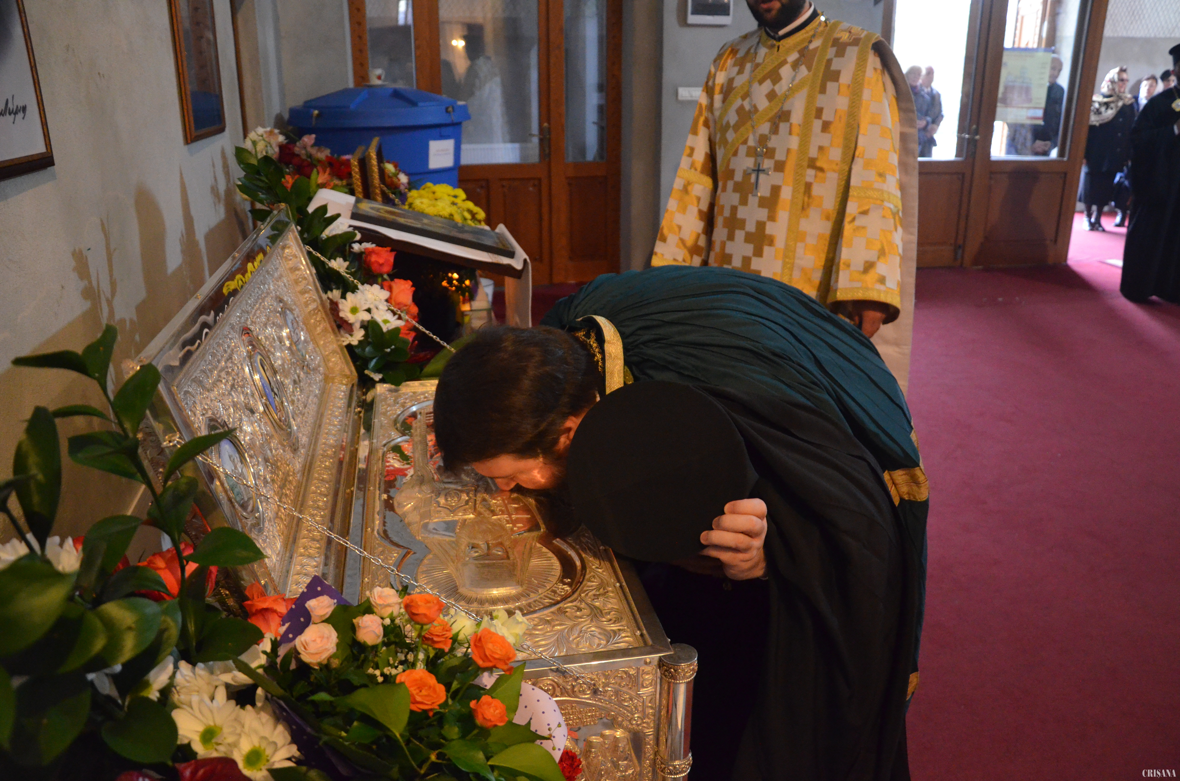 Ieri, de la ora 9.00, a avut loc Sfânta Liturghie Arhierească, săvârșită de Prea Sfințitul Sofronie, episcopul ortodox român al Oradiei, împreună cu un sobor de ieromonahi, preoți și diaconi, iar după-masă, de la ora 17.00, a avut loc o procesiune cu Sfintele Moaște, în jurul catedralei, după care a fost oficiată Taina Sfântului Maslu.