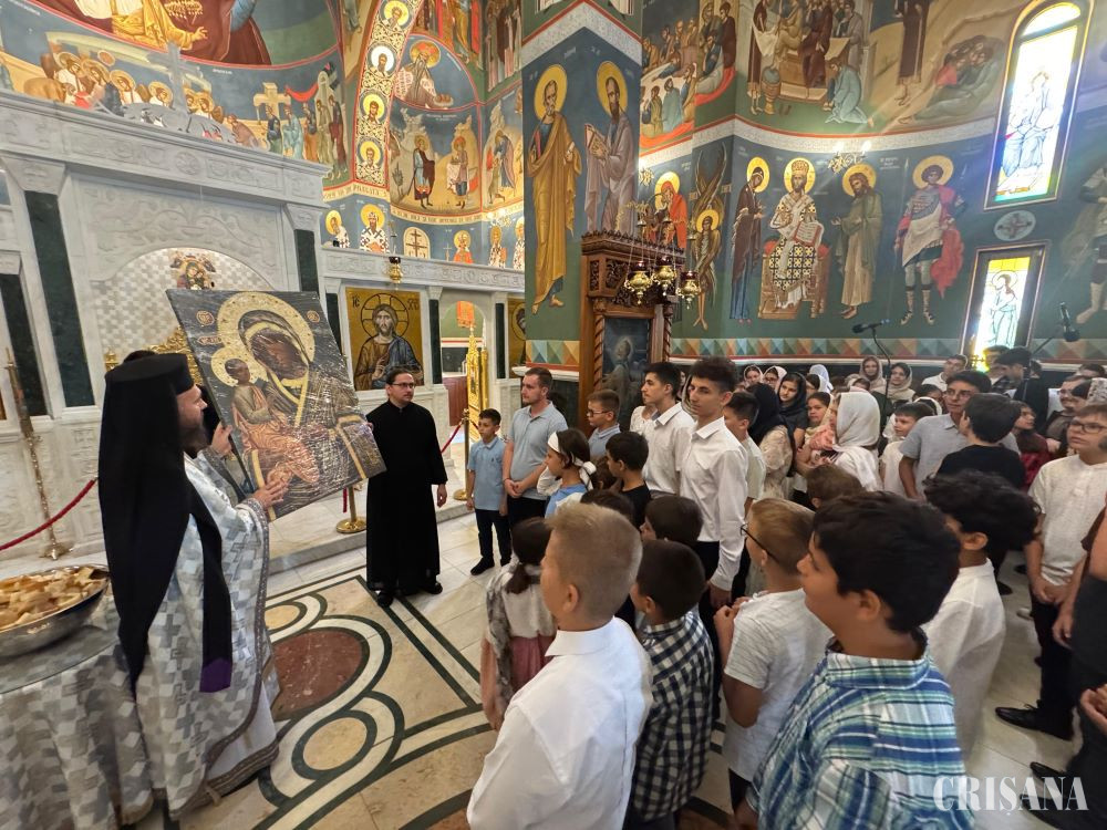 Sosirea lor a avut loc în ajun, când, după o cină frățească, au fost găzduiți de obștea mănăstirii. Dis-de-dimineață, de la ora 7:00, toți membrii grupului aflați în pelerinaj, peste 100 de copii și tineri, au fost prezenți în biserica mănăstirii, unde au dat răspunsurile liturgice în cadrul Sfintei și Dumnezeieștii Liturghii. Slujba a fost săvârșită cu aleasă cuviință și evlavie de către Preacuviosul Părinte Arhimandrit Mihail Tărău, starețul mănăstirii și părintele duhovnicesc al obștii. Prin cântările curate și îngerești ale tinerilor psalți, cerul s-a unit cu pământul, iar rugăciunea a străbătut sufletele celor prezenți.