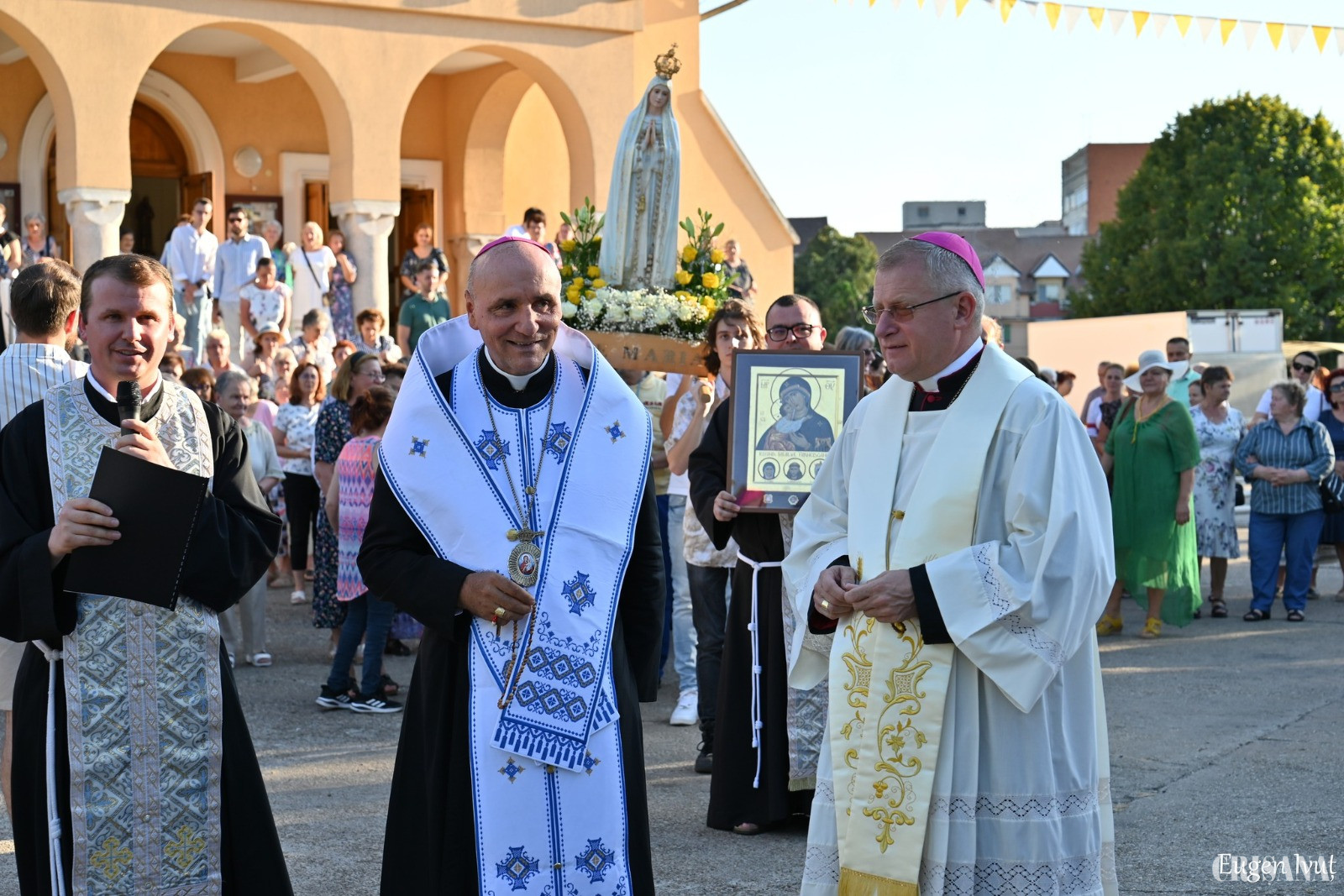 Pe tot parcursul procesiunii, respectiv de la Sanctuarul Eparhial al Maicii Domnului până la Bazilica Romano-Catolică, și sosirea înapoi la Biserica „Adormirea Maicii Domnului”, soborul de preacucernici preoți și frați călugări din Ordinul Franciscanilor Conventuali, împreună cu credincioșii, au înălțat spre cer devoțiunea Sfântului Rozariu, în prezența Statuii Maicii Domnului. După procesiune, în Biserica Adormirea Maicii Domnului, grupul de pelerini, conduși de preacucernicii preoți din parohia Bisericii „Sfinții Arhangheli Mihail și Gavril” din Sântandrei, au parcurs cele 14 Stații al Devoțiunii Calea Crucii, ale căror rugăciuni au transmis dorința arzătoare și aspirația de a-l primi pe Cristos și a fi uniți cu EL prin Sfânta Împărtăşanie.