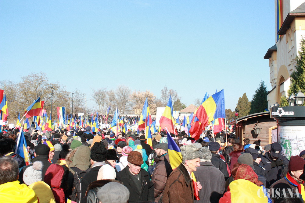 În ciuda unui frig năprasnic, oraşul s-a animat de la primele ore ale dimineţii. Câteva mii de oameni au pornit de la gara oraşului, pe Bulevardul Ferdinand, în Marşul Unirii, dedicat reunirii Basarabiei cu România.