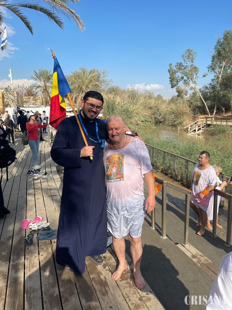 Spre marea mea mirare, deși fusesem încălzit înainte de căldura deșertului Hozevei, după intrarea în apa Iordanului, nu numai că nu am făcut pneumonie sau răceală, dar nu am avut nici măcar un semn de guturai, ci dimpotrivă m-am simțit mai sănătos ca nicicând. Am făcut o fotografie cu preotul Pașca, după ce i-am destăinuit emoția trăită de Bobotează în copilărie și apoi ne-am îndreptat cu toții spre vestiare să ne echipăm, după ce am primit fiecare din partea preoților noștri îndrumători câte un certificat de botez în râul Iordan. (Va urma)