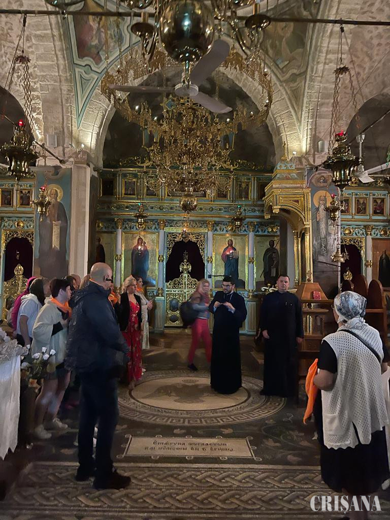 Ultima vizită din cea de-a doua zi de pelerinaj a fost programată de preoții noștri îndrumători la sfânta mânăstire a Sfântului Gherasim (în arabă Hadjila) situată tot în preajma râului Iordan. Sfântul este cunoscut nu numai pentru că a rânduit viața de obște a monahilor de aici, ci și pentru că a îmblânzit un leu care nu l-a părăsit până la moarte. Episodul cu îmblânzirea leului ne aduce imediat aminte de scena memorabilă în care Daniel, un mare fiu al poporului ales, pe vremea exilului, fiind pârât de dregători la regele persan Darius că acesta se închină pe ascuns cu fața spre Ierusalim, ignorând idolatria regală, regele Darius, a ordonat aruncarea rebelului religios în groapa cu lei. Spre uimirea regelui și a întregii curți persane, Daniel, înzestrat cu harul lui Dumnezeu, nu a fost sfâșiat de teribilele sălbăticiuni. Observăm astfel că pe cuprinsul Țării Sfinte sunt nu numai lăcașuri legate direct de viața și martiriul lui Iisus Hristos, ci și așezăminte care evocă viața exemplară a multor sfinți care au ales să se nevoiască aici și care au rămas în posteritate cu amintirea unor fapte care sfidează obișnuita rațiune. Unul din aceste lăcașuri este mânăstirea spre care ne îndreptăm acum cu toții și în care intrăm cu capetele descoperite, sfântul Gherasim fiind prăznuit pe 4 martie.