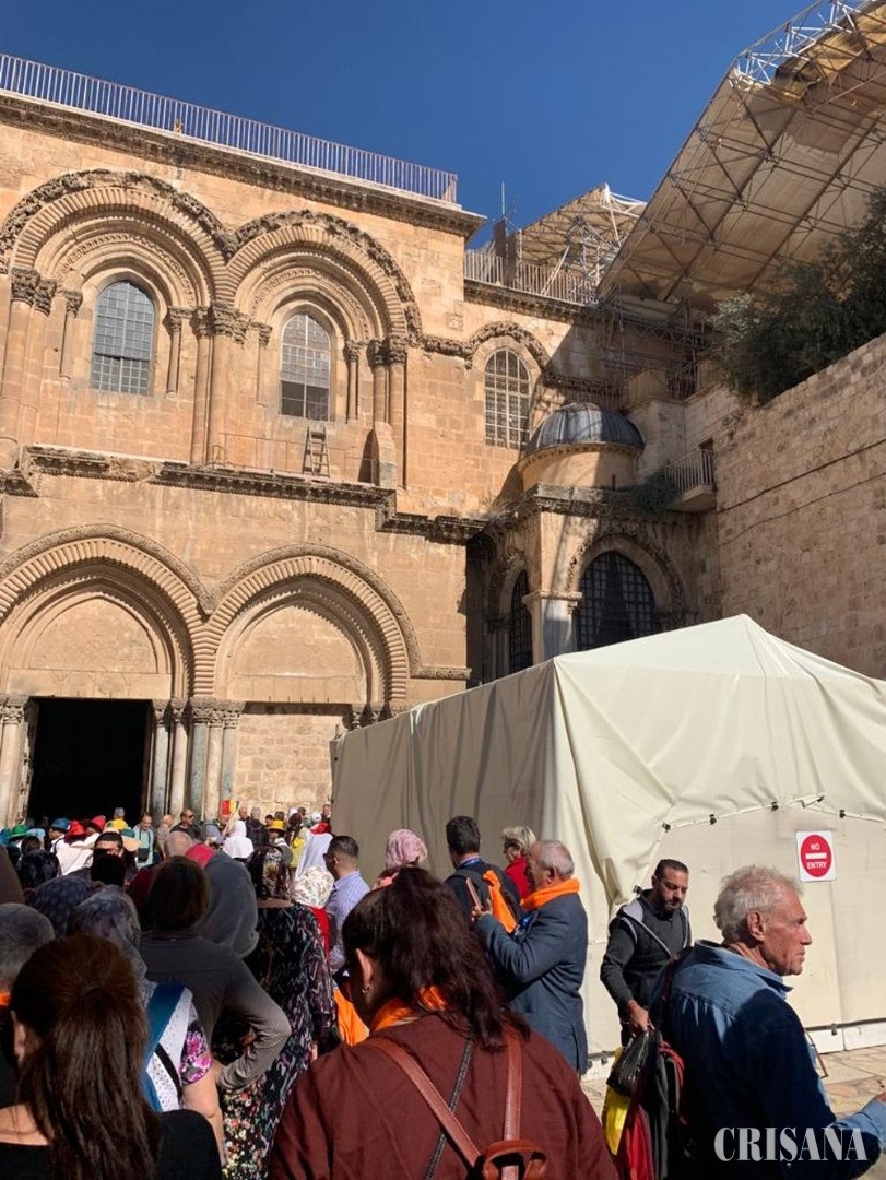 Înainte de intrarea în Biserica Sfântului Mormânt am simțit o mare și copleșitoare emoție. Înaintam pas cu pas, într-un cortegiu imens de pelerini, în dreapta noastră era ridicat un cort alb, destinat probabil celor care li se face rău după truda mersului pe Drumul Crucii, având în vedere că mulți dintre pelerini sunt oameni în vârstă și care nu vor să moară înainte de a se închina la Sfântul Mormânt. Biserica Sfântului Mormânt a fost ridicată de către Constantin cel Mare în secolul al IV-lea, după ce s-a creștinat și a consacrat creștinismul ca religie oficială a Imperiului Roman. În anul 326, Constantin I a trimis pe mama sa Elena să caute amplasamentul crucificării din Cetatea Ierusalimului. Elena a găsit locul și vestigii ale crucii însăși, astfel, că pe acest loc, șapte ani mai târziu, primul împărat creștin a fondat biserica Sfântului Mormânt în anul 333. Din păcate, după invazia persană din fatidicul an 614, cea mai mare parte a structurii Sfântului Mormânt a fost ruinată prin incendierea clădirii de către persanii lui Kosrau II. În anul 630, împăratul Heraclius a intrat în Irusalim și a restaurant adevărata cruce în biserica Sfântului Mormânt care a fost reclădită. Sub stăpânirea musulmană, ea a rămas biserică creștină, dar în anul 966 porțile și acoperișul au fost arse în timpul unei revolte. Mai mult, în data de 10 octombrie 1009, sub califul Hatimid Al-Hakim bi-Amr Allah, au fost executate ordinele acestuia de distrugere completă a bisericii. Se crede că șeful musulman s-a simțit lezat în amorul propriu de stăpân și în amorul față de Allah de amploarea pelerinajelor creștine din ziua sfântă a Paștelui când se petrecea marea minune a venirii Focului Sfânt pe mormântul Mântuitorului Iisus Hristos. În negocierile dure dintre dinastia conducătoare a Fatimizilor și Imperiul Bizantin, în anii 1207 și 1208, s-a ajuns la o înțelegere în care noul calif Ali Al-Zahir, fiul lui Al-Hakim, a acceptat reclădirea bisericii și redecorarea acesteia. Împăratul Constantin al IX-lea Monomachos și patriarhul Nicephorus din Constantinopol au completat în final reclădirea bisericii cu mari jertfe financiare în anul 1048. Apoi biserica a trecut în mai multe rânduri de sub stăpânirea Fatimizilor în cea a turcilor selgiucizi, loiali califului abbasid din Bagdad, până la sosirea cavalerilor cruciați.