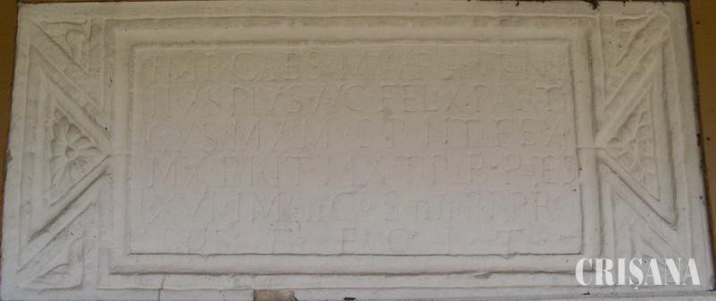 Profesorul dr. Ioan Piso, fostul director al Muzeului Transilvania, a fost în vară să vadă placa și starea de conservare și a oferit cu această ocazie și câteva detalii despre aceasta. Astfel am aflat că placa a fost găsită în anul 1934 de țărani, în partea de sud-est a castrului de pe Pomet (Porolissum, Munţii Meseş), lângă porta decumana, fiind încastrată deasupra intrării. Aceasta este de construcție de calcar galben, având dimensiunea de 65 de cm lățime, 146 cm lungime și 13 cm grosime cu literele inscripționate de 5-6 cm. Textul de pe placă, după traducere, cuprinde următorul mesaj: