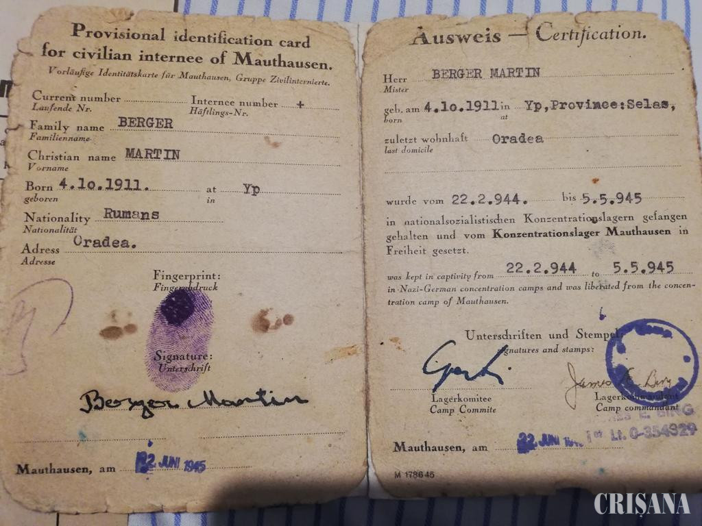 În urmă cu 80 de ani, în 1945, odată cu încheierea războiului, s-au eliberat și lagărele. La Oradea au revenit un număr de aproximativ 2000 de evrei. Unii s-au întors „acasă”, alții s-au aflat în trecere, mai spre est. Printre supraviețuitorii lagărelor de la Auschwitz și Mauthausen, se numără soții Ileana și Martin Berger, care și-au pierdut sigurul copil, Mircea, de 4 ani, în camerele de gazare de la Auschwitz. Cu viețile devastate, încărcați de traume imense, rămași fără nimic, cu toți cei dragi pieriți în coșmarul tocmai încheiat, și-au reclădit căminul și viețile în orașul care i-a deportat, Oradea. Au zămislit doi copii, pe care i-au crescut încercând să nu le transfere suferințele. Și-au crescut și iubit apoi nepoatele, pe care le-au dus la lecții de balet, la plimbare prin orașul care le-a furat demnitatea și viața. Mâna tatuată a bunicii le-a mângâiat, le-a gătit mâncărurile preferate și le-a dat în leagăn... S-au stins în mijlocul celor dragi, ai stirpei pe care au renăscut-o din cenușa lagărelor de exterminare, iubiți și respectați, lăsând în urmă file scrise „pentru cei care vor veni după noi”, spre neuitare, ca să afle și ei și să nu se mai repete, fiindcă dacă știi, poți să te ferești. Este în curs de publicare, la Ratio et Revelatio volumul de memorii dedicat familiei Berger, cu sprijinul Mariei Lontiș, nepoata lor.