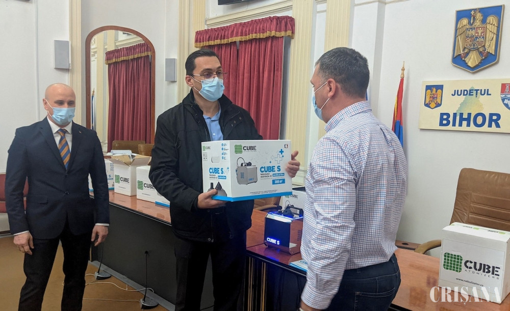 Cinci spitale din linia I din județul Bihor au primit astăzi gratuit nebulizatoare medicale Cube S, aparate performante de ultimă generație, utilizate în dezinfecția terminală a unităților medicale.