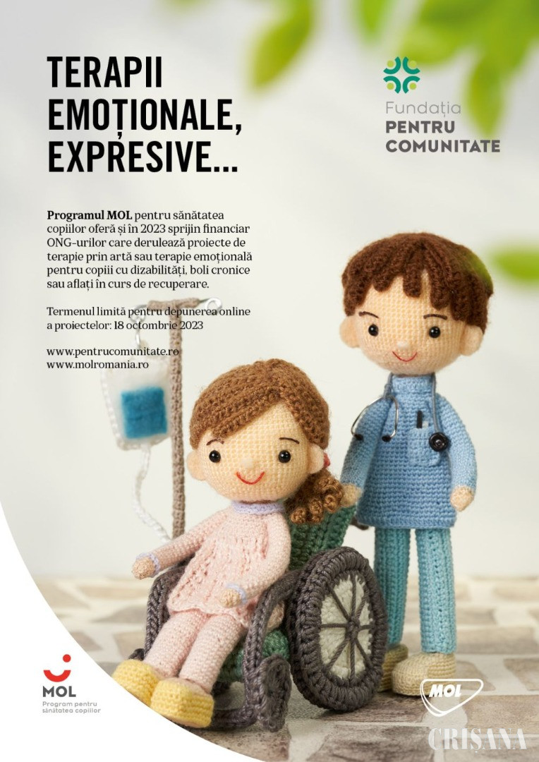 S-a dat startul înscrierilor pentru concursul de proiecte din cea de-a 15-a ediție a Programului MOL pentru sănătatea copiilor. Finanțarea poate fi accesată de organizațiile neguvernamentale care derulează proiecte de terapie emoțională și intervenții psiho-sociale pentru copiii cu nevoi speciale sau boli cronice.
