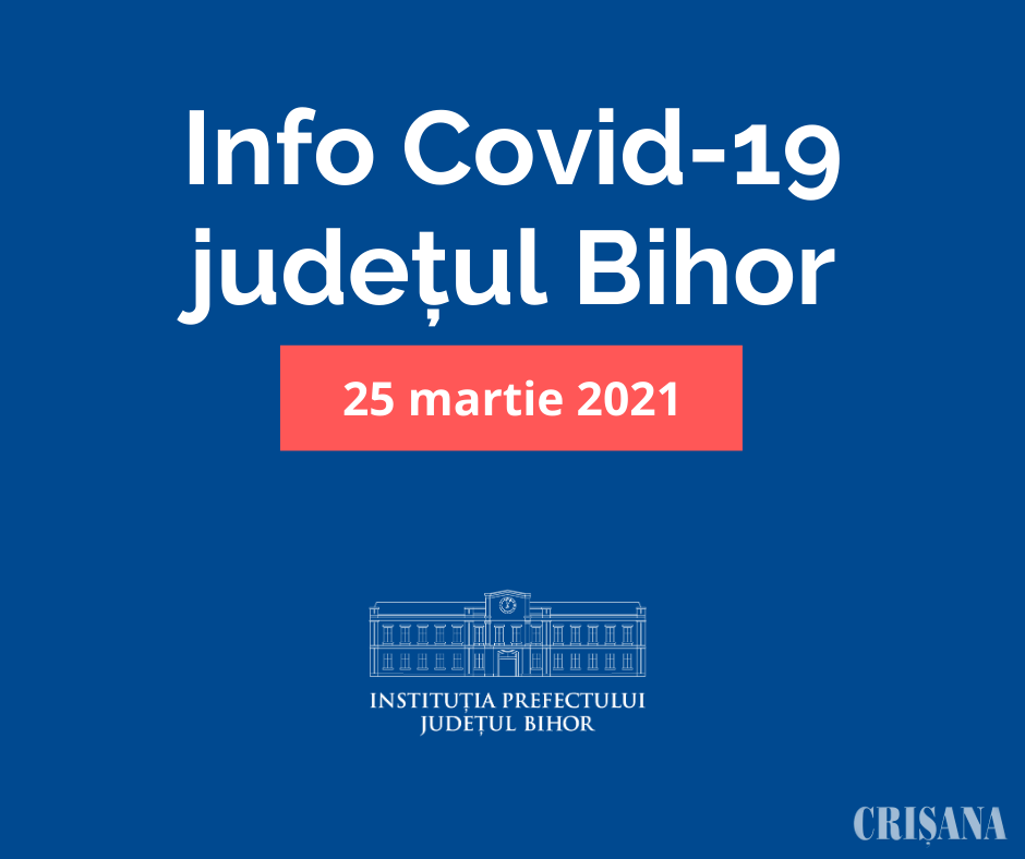 Coeficientul infectărilor cumulate la 14 zile, raportate la 1.000 de locuitori, calculat de către Direcțiile de Sănătate Publică ale județelor, pentru azi, 25 martie, este următorul: Ilfov - 7,91, București - 6,50, Timiș - 6,14, Cluj - 5,47, Bihor - 2,67 (în creștere). Media națională a cazurilor de Covid-19 este de 3,83.