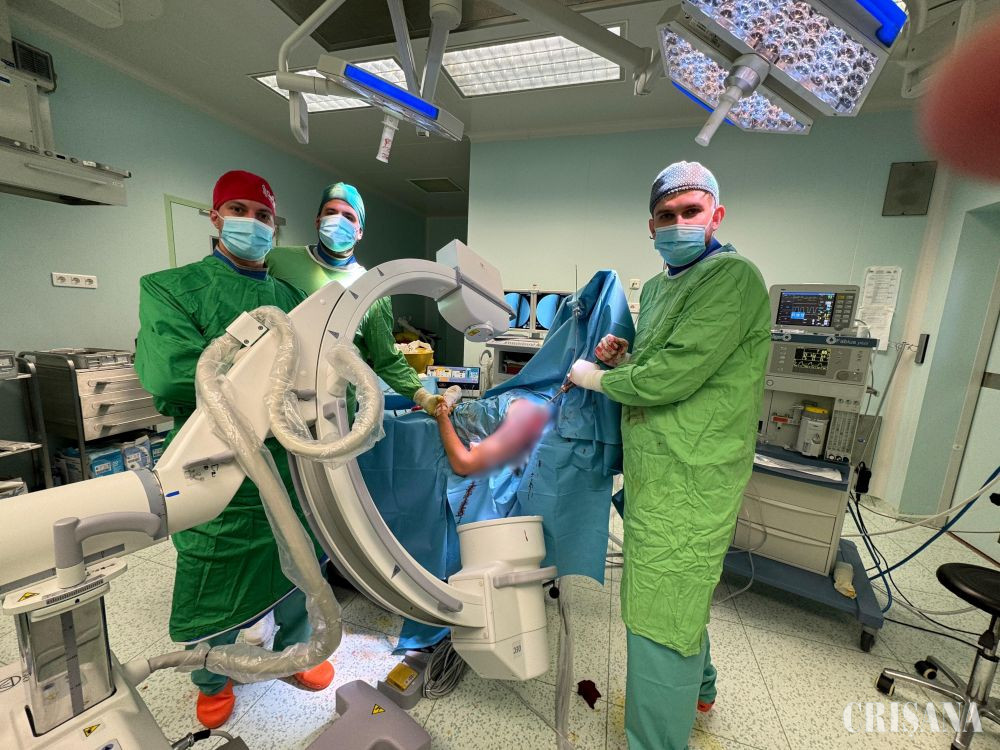 Așadar, echipa operatorie a decis să efectueze, în premieră județeană, reducerea ortopedică închisă cu osteosinteză prin tijă zăvorâtă din titan pentru un pacient pediatric. Sub control radiologic, s-a efectuat reducerea ortopedică închisă a osului fracturat, iar apoi s-a introdus o tijă de titan pentru fixarea fragmentelor osoase.