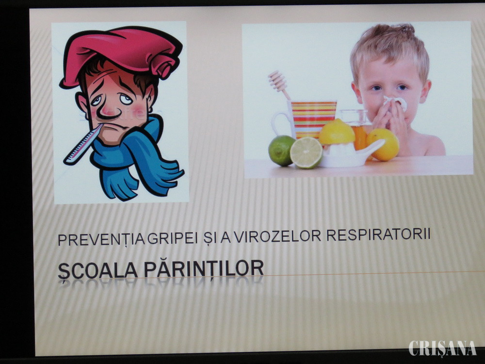 În cadrul întâlnirii, părinţii au aflat informații despre importanţa cunoaşterii diferenţei dintre simptomele gripei şi cele ale unei răceli specifice sezonului rece, precum şi manifestările simptomatice ale gripei şi modalităţile de abordare ale acesteia.
