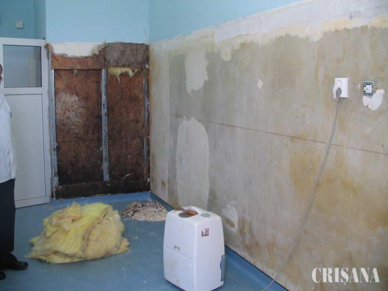Lucrările au fost executate de Eurociv SRL, fiind finanţate şi recepţionate de Primăria Oradea în 2009. La scurt timp însă, în saloanele 8 şi 9 ale Pavilionului 2 au apărut igrasia şi mucegaiul. Problemele au pornit de la duşurile amenajate în capătul saloanelor. Acestea au fost amenajate din pal pentru construcţii, fixat pe schelet metalic, în interior fiind căptuşit cu vată minerală izolatoare. În exterior, pereţii din pal au fost gletuiţi, fiind lipită în interior faianţă. În exterior, la fel ca pe pereţii salonului, a fost fixat tarchet de perete. Totuşi, apa s-a infiltrat în pereţii de rumeguş presat şi s-a extins pe pereţii acoperiţi cu tarchet, mucegaiul şi igrasia începând să apară pe pereţi. Deoarece lucrarea este încă în perioada de garanţie, „lucrările de remediere vor fi executate şi suportate de SC Eurociv SRL" ne-a transmis managerul Spitalului Municipal, dr. Ovidiu Pop. Lucru care s-a şi petrecut în această săptămână, muncitorii desfăcând cabinele de duş, faianţa şi desprinzând tarchetul de pe pereţi, pentru uscarea zidăriei. Se estimează că lucrările de refacere vor fi gata în aproximativ două săptămâni.