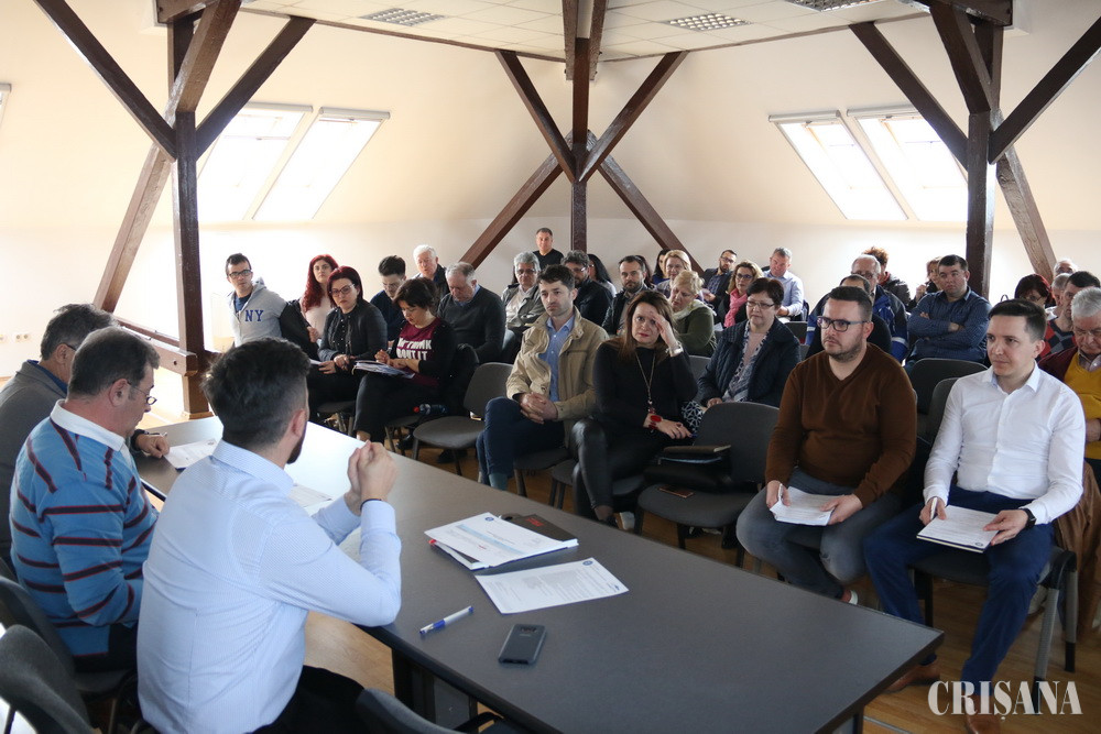 Alături de Marius Rotar, inspector șef ITM Bihor, la prezidiu s-au mai aflat, din partea instituției gazdă, Nicolae Hoduț, inspector şef adjunct pe probleme de SSM și Ioan Rădulescu, șef serviciu SSM.