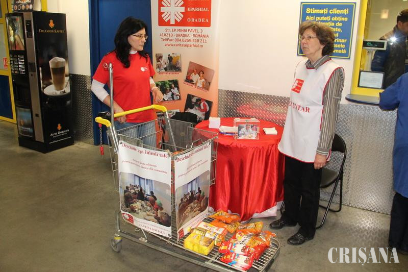 Colecta de Paşte "Deschide uşa inimii tale" a început în data de 9 martie în trei biserici din Oradea: Catedrala greco-catolică "Sfântul Nicolae", Biserica greco-catolică "Sfinţii trei ierahi" din Nufărul şi Mânăstirea Franciscană "Maica Domnului" din Parcul Olosig. Începând cu data de 8 aprilie, în intervalul orar 14.00-21.00 (la Selgros), şi 12 aprilie, în intervalul orar 16.00-21.00 (Era Shopping Park), voluntarii Caritas Eparhial sunt prezenţi la standuri special amenajate pentru a oferi informaţii şi pentru a strânge alimente. De la făină, ulei, zahăr, conserve sau dulciuri, până la orice sumă de bani, doritorii pot face donaţii până vineri, 18 aprilie, inclusiv. Este bine de ştiut că toate alimentele sunt înregistrate într-un tabel şi introduse în gestiunea asociaţiei, iar pentru sumele mai mari de 10 lei, se oferă chitanţă.