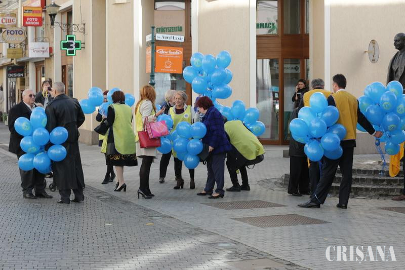 Peste 100 de baloane au fost lansate spre cer şi alte 100 au fost împărţite, ieri, orădenilor, de către membrii celor două Cluburi Lions, marcând asfel Ziua Mondială a Diabetului.