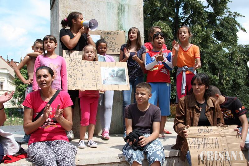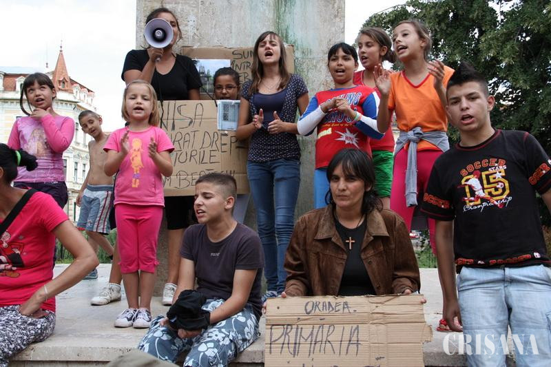 29 de copii şi 15 adulţi au decis ieri, ca timp de şase zile să protesteze în centrul Oradiei pentru faptul că administraţia locală a decis evacuarea lor, dar şi pentru că noile spaţii de cazare de pe Uzinelor nu oferă condiţii decente de trai.
