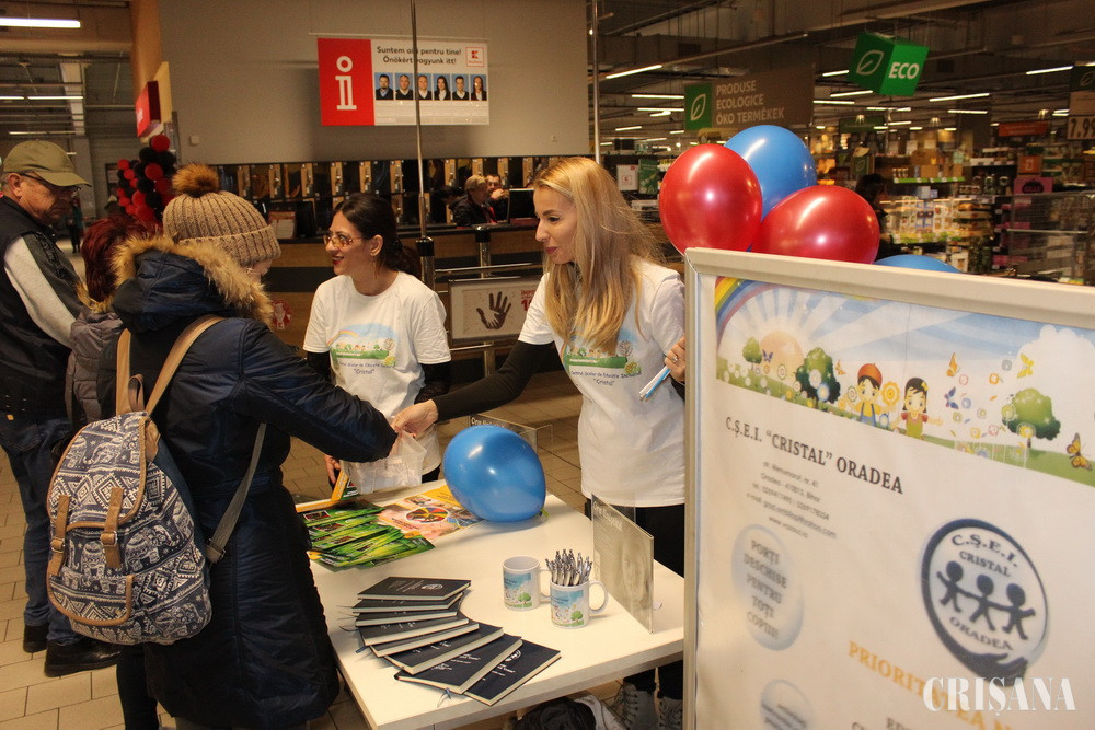 Acțiunea a transformat experienţa stresantă resimţită de persoanele cu autism în spațiul magazinelor într-una plăcută, urmărind să sensibilizeze publicul larg cu privire la nevoile persoanelor cu dizabilități. La fiecare din cele trei magazine ale companiei din Oradea, reprezentanţi ai CSEI Cristal au desfăşurat acţiuni de informare a persoanelor care au trecut pragul acestor unităţi, fiind organizată şi o tombolă în cadrul căreia participanţii au primit baloane colorate, pixuri şi agende oferite de CSEI Cristal.
