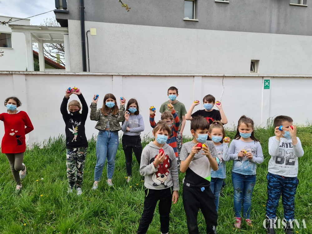 De la încondeiatul ouălor, la realizarea unor frumoase ornamente de Paști, copiii din Centrul de Îngrijire de Zi au luat parte la numeroase activități dedicate Sfintelor Sărbători. Totodată, aceștia au primit, zilele trecute, vizita unor tineri din comunitatea slovacă, din localitatea Valea Cerului, care le-au adus în dar pachețele cu dulciuri și jucării. Împreună, s-au bucurat de aventura căutării ouălor și de împodobirea cu ornamente de Paști a curții centrului.