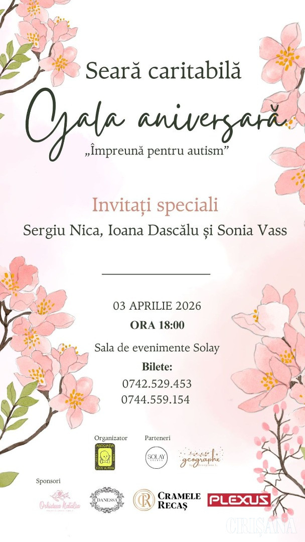 În continuarea evenimentelor, pe data de 3 aprilie, ora 18.00, în Sala de Evenimente Solay, va avea loc Gala aniversară „Împreună pentru Autism”, un eveniment caritabil organizat pentru susținerea activității Centrului de Zi al Asociației SOS Autism Bihor, care a fost înființat în urmă cu zece ani.