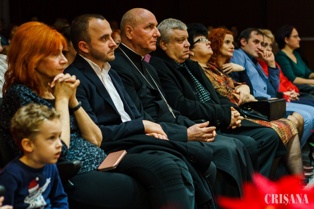 Sala de concerte „Enescu-Bartok” a Filarmonicii orădene a fost arhiplină, la eveniment fiind prezenți spectatori de toate vârstele, un public minunat care a înțeles ce înseamnă să fii un adevărat membru al cetății. Sfânta Sărbătoare a Nașterii Domnului a fost vestită de artiști, în cadrul unui emoționant program de colinde și cântece de Crăciun. Invitata specială a serii a fost cunoscuta interpretă de muzică populară Veta Biriș, care a oferit și două bisuri. Domnia sa a fost acompaniată la clape de Nicu Moldovan, de la Ansamblul Artistic Profesionist „Crișana”, la saxofon, de Cătălin Jurca, colaborator al Ansamblului „Crișana”, iar la vioară, de prof. Petre Șinca, de la Școala de Arte „Francisc Hubic”. Totul a decurs perfect, într-o atmosferă elegantă și distinsă. Alături de Veta Biriș, au mai urcat pe scenă: Dana Ionela Jurjuț, Teodora Felicia Șandru, Alexandru Mihai Cartiș și corul de copiii al Liceului Greco-Catolic ,,Iuliu Maniu”, dirijor, prof. Nicoleta Emilia Țâmpu. Prezentatorul spectacolului a fost regizorul Horia Balint.