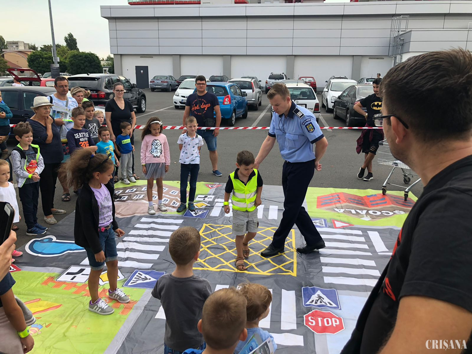 Anul acesta, polițiștii i-au învățat pe copii cum să aibă singuri grijă de ei, ca pietoni în trafic. În județul Bihor, lecțiile interactive dedicate copiilor cu vârsta între 4 și 10 ani au fost susținute în parcările celor patru magazine Lidl din județul Bihor, respectiv în trei locaţii din municipiul Oradea şi una din municipiul Salonta.