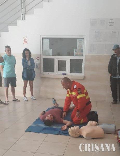 Pompierii din cadrul Inspectoratului pentru Situații de Urgență „Crișana” al județului Bihor (ISU BH) continuă activitățile de instruire a bihorenilor în domeniul situațiilor de urgență, în această perioadă, caracterizată prin temperaturi ridicate, un accent deosebit fiind pus pe măsurile preventive referitoare la scăldat și pe intervenția de urgență în caz de înec. În dimineața zilei de miercuri, 15 iunie a.c., pompierii din cadrul Centrului de Formare și Pregătire în Descarcerare și Asistență Medicală de Urgență al ISU BH au desfășurat la Bazinul Acoperit Crișul, din municipiul Oradea, o sesiune de pregătire a angajaților (instructori de înot, sportivi și personal auxiliar), explicându-le și exemplificându-le modul în care pot salva viețile oamenilor aflați în situații de urgență. Astfel, personalul ISU BH le-a prezentat participanților la activitate semnele iminenței înecului și conduita de urmat în cazul obstrucției severe la victimă conștientă, instruindu-i, totodată, cu privire la suportul vital de bază la adult și la copil: siguranța salvatorului, stabilirea nivelului de conștiență, eliberarea și verificarea căilor aeriene, verificarea respirației, poziția laterală de siguranță și efectuarea manevrelor de resuscitare cardio-pulmonară. De asemenea, celor prezenți le-au fost prezentate metode de oprire a unei hemoragii și modul de acordare a primului ajutor în cazul unei victime care a suferit arsuri.