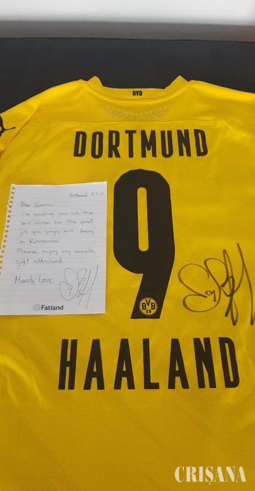 Vedeta licitației, tricoul cu semnătura fotbalistului internațional Erling Haaland, va avea o lună termen pentru a fi licitat.