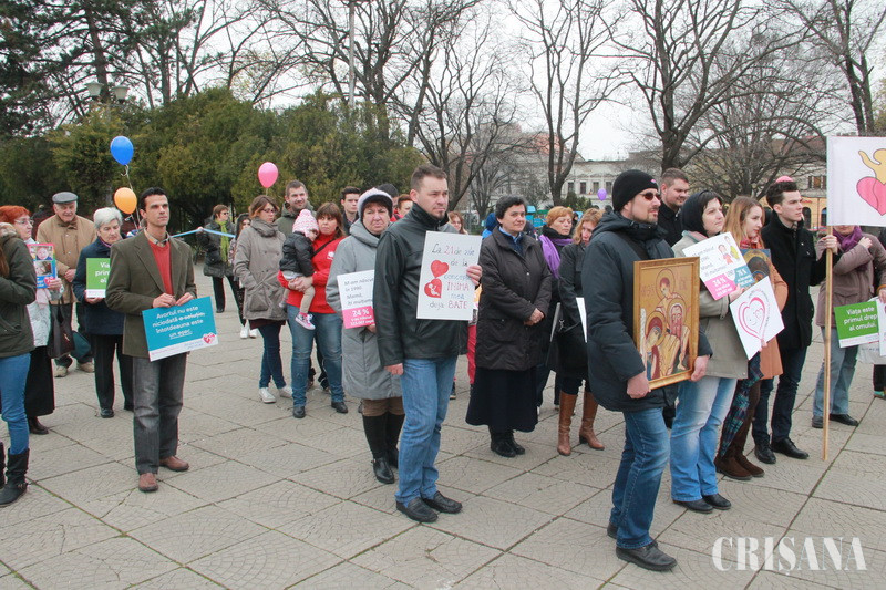 Frigul de afară, dar și faptul că ediția din acest an a „Marșului pentru viață” a coincis cu Sâmbăta Mare la romano-catolici au făcut ca prezența orădenilor la eveniment să fie mai mică decât în anii trecuți. Sloganul sub care s-a desfășurat manifestarea a fost „Marş pentru viaţă, pentru femeie, pentru familie”, pentru a atrage atenţia asupra numărului tot mai mare de avorturi. În ultimii 50 de ani, numărul de avorturi înregistrate oficial în România a depăşit 22 de milioane, dar numărul real al acestora este mult mai mare.