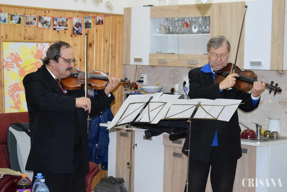 Spectacolul a fost deschis de Ioana Precup. Scriitoarea, în vârstă de 80 de ani, autoare a 15 volume, a citit un „buchet” din poeziile sale. Programul a continuat în compania violoniștilor Lucian Malița și Thurzó Sándor József, care au interpretat o serie de melodii clasice și romantice, emoționându-i până la lacrimi pe rezidenți, care i-au răsplătit cu îndelungi aplauze. Cei doi artiști au interpretat piese de Camille Saint-Saëns, Mascagni, Ernani Aguiar, Lehár Ferenc și Eszláry Erzsébet, dar și piese romantice cerute de public, ca Romance Celebre de Martini, ori serenada spaniolă La paloma.