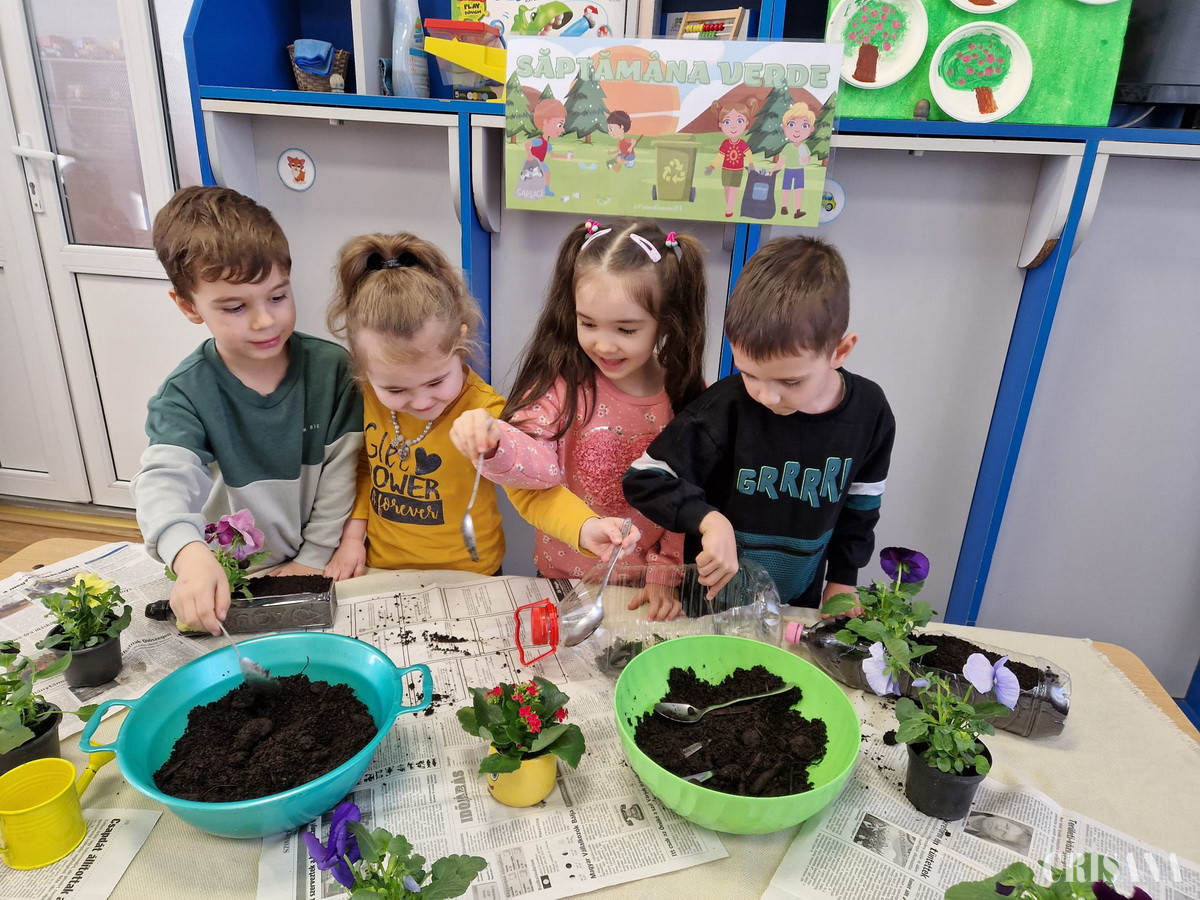 Copiii de la Grădinița cu Program Prelungit nr. 46, Allegria, au avut o săptămână plină. În cadrul „Săptămânii verzi”, micuții s-au împrietent cu natura, învățând lucruri mai puțin știute despre ea, s-au jucat și au plantat flori în jardiniere reciclabile.