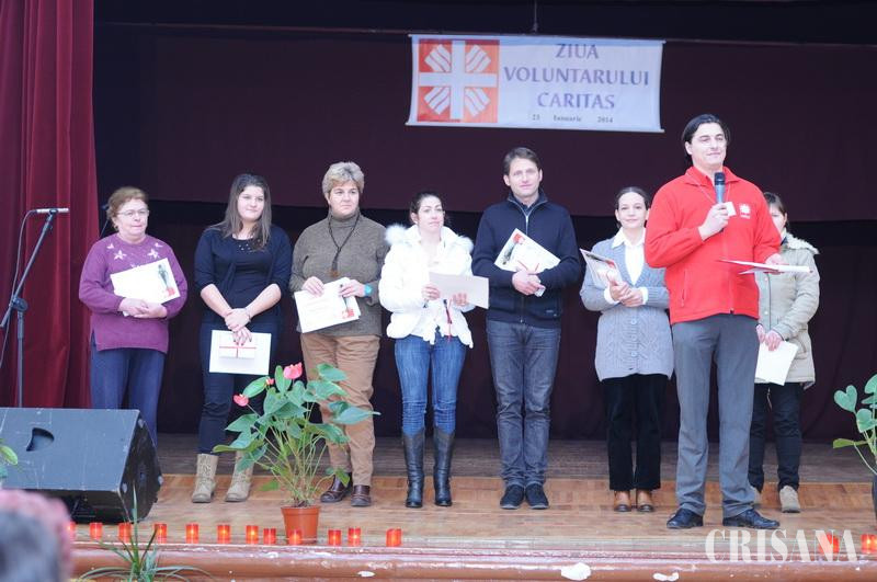Premiul "Colecta de Paşti" s-a acordat voluntarului Vlad Raita pentru implicarea în strângerea de alimente pentru familiile aflate în dificultate. Premiul "Campania 2%" (una dintre activităţile de strângere de fonduri cele mai solicitante) a fost acordat voluntarelor Sorina Alexandra Pop, Diana Negruţ şi Andreea Rada. Premiul "Strângerea de fonduri" s-a acordat voluntarelor Mariana Man şi Georgeta Finna. Premiul pentru Disponibilitate (acordat nu doar pentru implicarea într-o activitate anume, ci în majoritatea sau în totalitatea activităţilor) a fost primit de voluntarii Adriana Lupaş, Radu Cefan şi Dan Ile. Cel mai important premiu al ediţiei a VIII-a, "Voluntarul anului 2013" a fost acordat Danielei Neşu pentru timpul, disponibilitatea, diversitatea activităţilor, numărul de ore prestate şi calitatea serviciilor oferite. Aceasta, în anul 2013, a oferit din timpul său 537 de ore în folosul aproapelui. Evenimentul, prezentat de Ioana Mădălina Ştefănică, a fost presărat cu momente artistice susţinute de copiii care frecventează Centrul de Zi "Gabriele" îndrumaţi de Dan Ile, de elevii Crista Stan şi Olimpiu Man şi de studenta Violeta Sfârle. Premiile pentru voluntari au fost asigurate de Librăria Gutenberg. "Felicitări tuturor voluntarilor şi deosebite mulţumiri pentru tot ceea ce au făcut pentru beneficiarii Asociaţiei Caritas Eparhial Oradea şi pentru asociaţie", a spus preşedintele Asociaţiei, pr. Olimpiu Todorean.