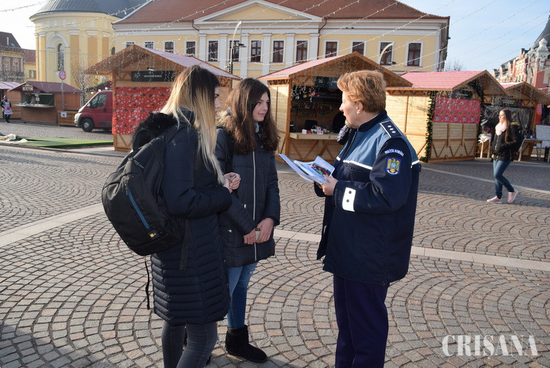 Pentru a preveni victimizarea cetățenilor în preajma sărbătorilor de iarnă, polițiștii Compartimentului de Analiză şi Prevenire a Criminalităţii din cadrul Inspectoratului de Poliţie Judeţean Bihor continuă acțiunile preventive în zonele publice aglomerate din municipiul Oradea, oferind cetățenilor recomandări importante pentru siguranța acestora.