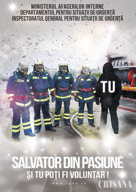 Inspectoratul General pentru Situaţii de Urgenţă a lansat, începând de ieri, o provocare cetăţenilor, aceea de a deveni voluntar în cadrul inspectoratelor pentru situaţii de urgenţă din România. „Demersul instituţiei noastre are la bază beneficiile activităţilor de voluntariat, ca expresie a implicării, solidarităţii şi responsabilităţii civice şi valorii profesionale a acestora, materializată în sprijinul acordat comunităților pe timpul situațiilor de urgență, dar și pentru prevenirea lor”, se arată într-un comunicat de presă transmis, ieri, de ISU „Crişana”. După parcurgerea unor programe de pregătire, activităţile derulate alături de efectivele inspectoratului general vor consta în participarea la misiunile de intervenție, utilizarea noţiunilor de bază în acordarea primului ajutor calificat, implicarea în acţiunile de ajutor umanitar şi în cele de popularizare a mesajului preventiv. Proiectul, intitulat „Salvator din pasiune”, se va derula în perioada 10 mai – 29 iulie a.c., interval de timp structurat în trei etape ce presupun recrutarea şi înscrierea candidaţilor, analizarea dosarelor și încheierea contractelor de voluntariat.