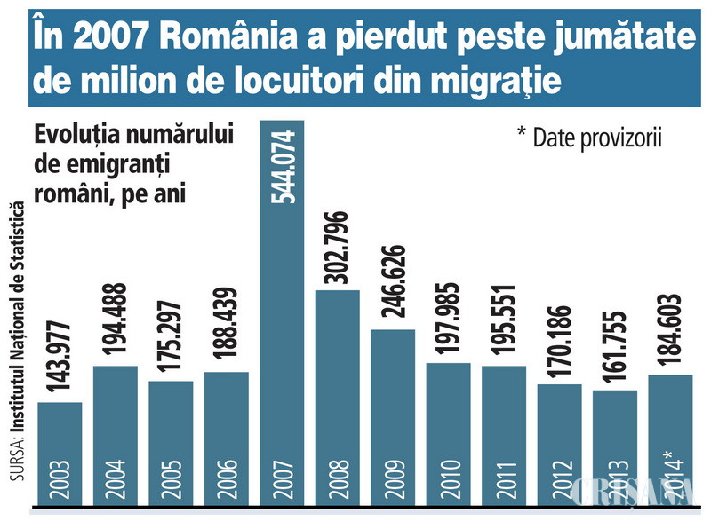Românii au devenit, în câţiva ani, migranţi economici şi au ajuns să aibă cea mai mare diaspora din Uniunea Europeană, înaintea unor ţări cu o populaţie mult mai mare. Datele ONU arată că în străinătate locuiesc şi muncesc peste 3,4 milioane de cetăţeni români. Este un număr mult peste estimările oficiale făcute de autorităţi şi probabil mai mic faţă de numărul real al românilor dezrădăcinaţi.