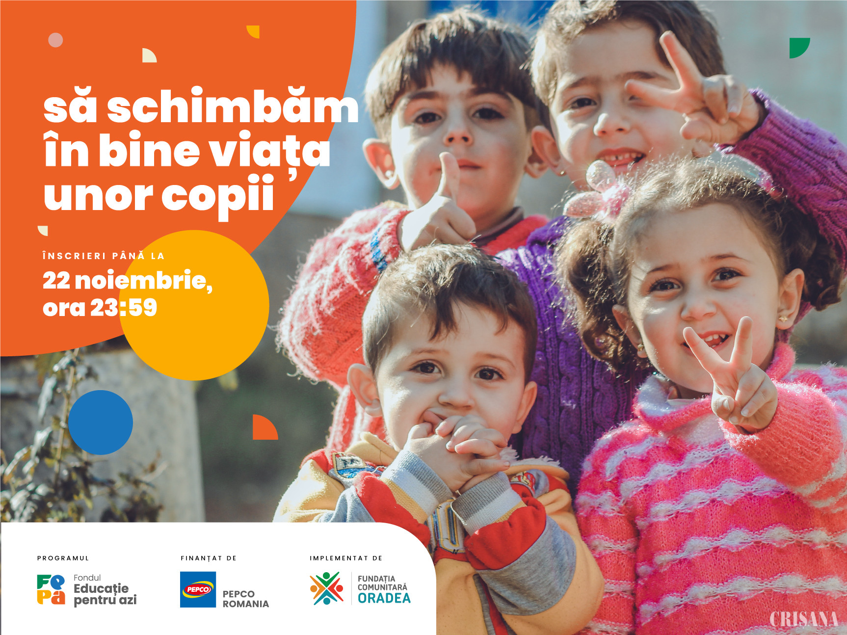 „Prin Fondul Educație pentru azi, susținut de Pepco România, ne dorim să creăm o viață normală pentru copiii din mediul rural, din județul Bihor, proveniți din familii defavorizate. Punem la bătaie 9.000 de euro pentru minim șase proiecte”, anunță reprezentanții Fundației Comunitare Oradea.